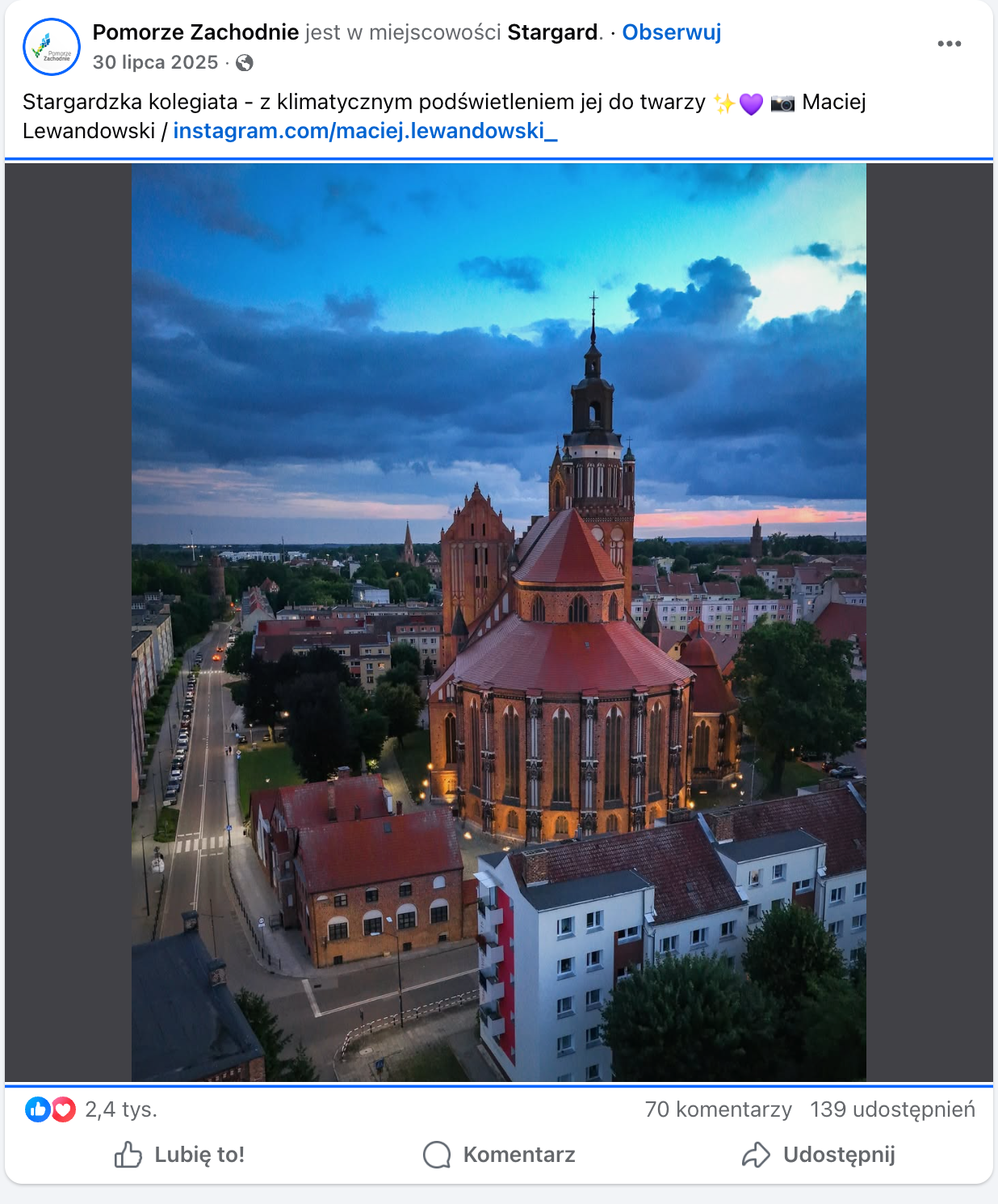 Z powodzeniem prowadziłem kanał Visit Stargard (obecnie ciaokadre), promując walory turystyczne i historyczne miasta. Tworzyłem treści wizualne oraz komunikacyjne budujące spójny i atrakcyjny wizerunek Stargardu w przestrzeni cyfrowej. Materiały były oparte na autorskich fotografiach i filmach. Moje zdjęcia oraz materiały wideo były wielokrotnie udostępniane przez oficjalne kanały Urzędu Marszałkowskiego w Szczecinie, na stronach promocyjnych „Pomorze Zachodnie”, co potwierdza ich jakość oraz skuteczność w budowaniu regionalnego przekazu promocyjnego. Prowadzenie kanału obejmowało planowanie treści, tworzenie materiałów wizualnych (również z drona), redakcję opisów, optymalizację publikacji pod media społecznościowe oraz bieżącą analizę zasięgów i zaangażowania odbiorców.